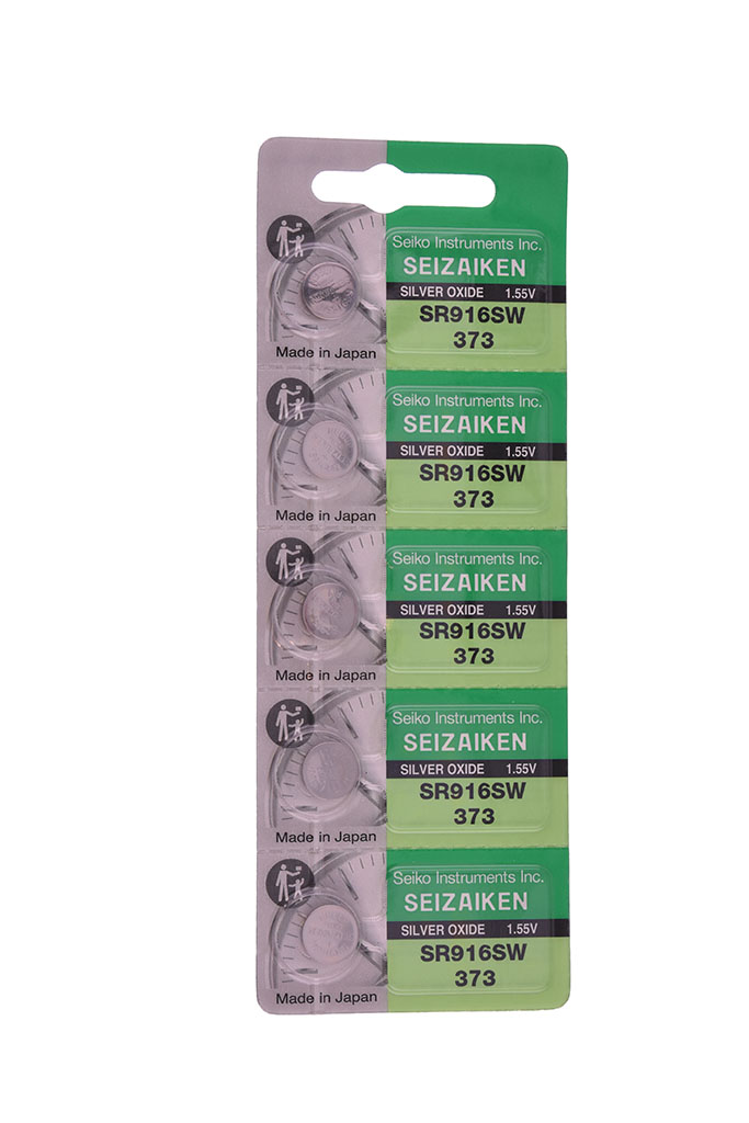 Batería de botón Seiko SR916SW (373) de óxido de plata, diseñada para ofrecer voltaje estable de 1.55V y alto rendimiento en relojes de cuarzo. Su tecnología Low Drain (SW) es ideal para aplicaciones de bajo consumo, garantizando precisión y larga duración. Libre de mercurio (0% Hg) y con excelente resistencia a fugas. Compatible con 373, SR916SW y SR916 (equivalente alcalina: LR916, menor rendimiento).