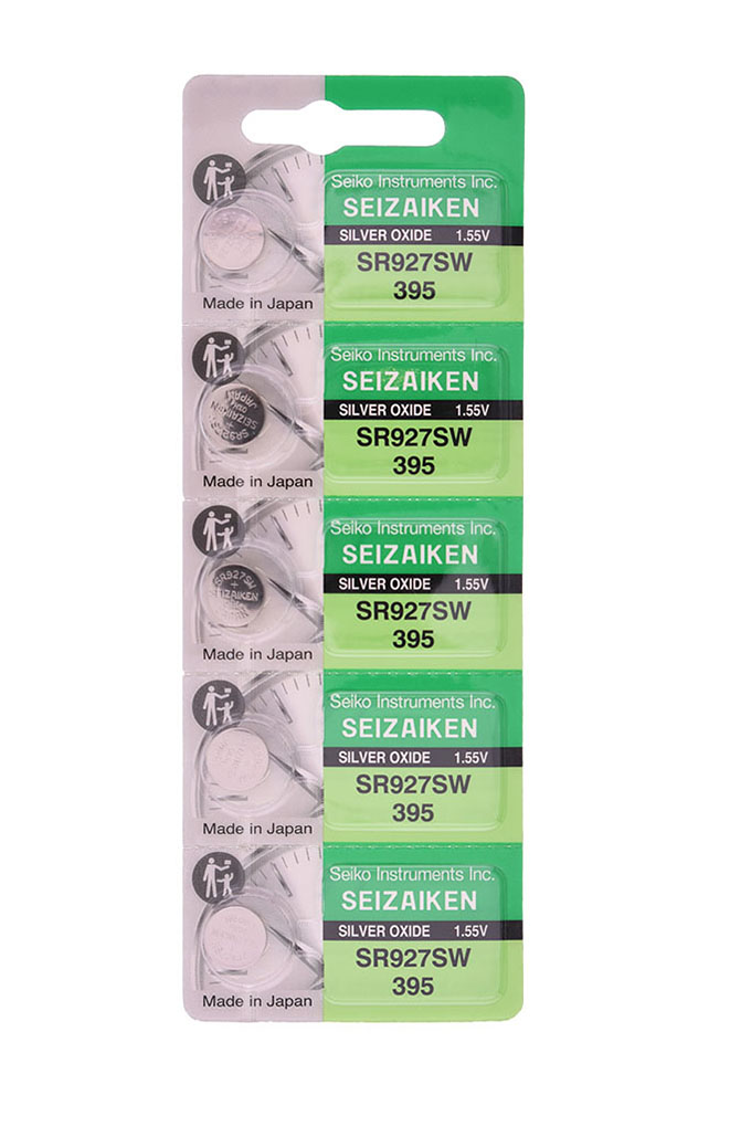 Batería de botón Seiko SR927SW (395) de óxido de plata, diseñada para ofrecer voltaje estable de 1.55V y alto rendimiento en relojes de cuarzo. Su tecnología Low Drain (SW) es ideal para aplicaciones de bajo consumo, garantizando precisión y larga duración. Libre de mercurio (0% Hg) y con excelente resistencia a fugas. Compatible con 395, SR927SW y SR927 (equivalente alcalina: LR927, menor rendimiento).
